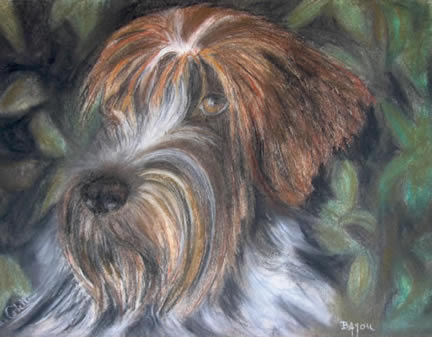 Colette Altares , artiste photographe, a réalisé ce dessin au pastel à partir de l'une de mes photos de Bayou le griffon korthals visitez ses sites web : http://www.pixelseyes.com/ http://home.scarlet.be/griffon_korthals_passion/