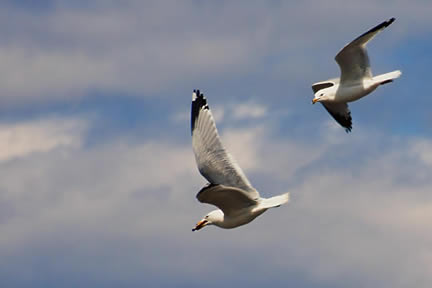 Goélands à bec cerclé, avec un oiseau dans la gueule