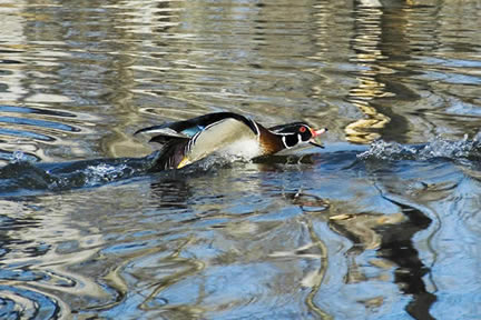 Canard branchu mâle pourchassant un autre mâle