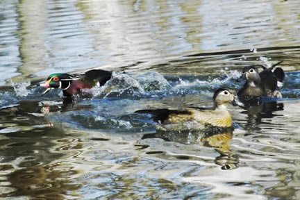 Canard branchu pourchassant un autre canard branchu mâle